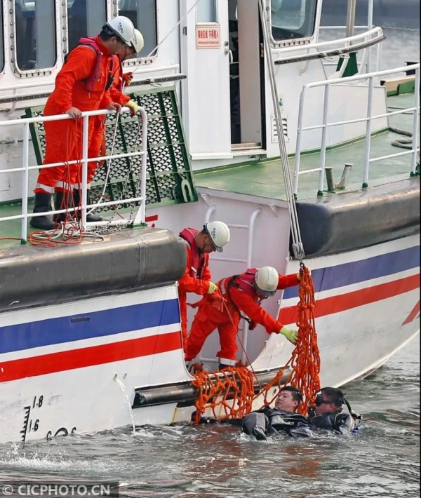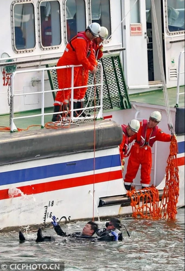 以上图片:参加救助演练的人员对模拟遇险人员进行救援。CICPHOTO/曹建雄 摄